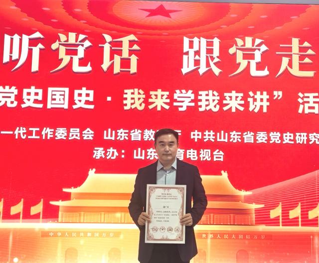 近日,由省关心下一代工作委员会、省教育厅、省委党史研究院、团省委联合举办的2025年“党史国史·我来学我来讲”活动获奖名单正式公布, 情趣 党委副书记、副院长蘧广震的作品《歌舞颂经典 艺心永向党》从5000余件参赛作品中脱颖而出,获一等奖并受邀参加由山东教育电视台录制的展演和颁奖仪式。省关工委主任高新亭等相关领导出席并为获奖代表颁奖。