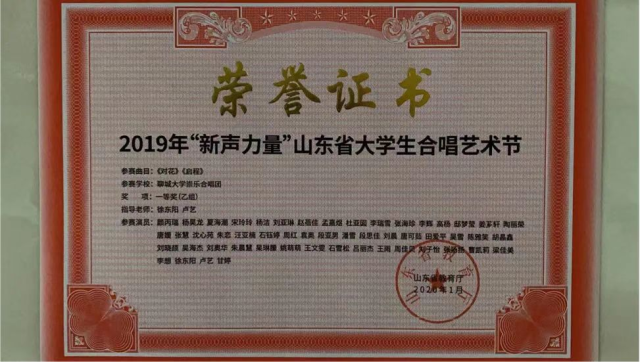 2019年12月3日,崇乐合唱团参加由山东省教育厅举办的山东省大学生合唱艺术节,获专业组一等奖。