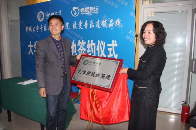9月23日, 情趣 与聊城市东昌府区晓雯音乐培训学校有限公司建立就业基地并举行签约授牌仪式, 情趣 党总支副书记张进军,团委书记梁建新,科研秘书潘佩佩,辅导员石晓晗以及晓雯音乐培训学校领导出席了本次仪式。